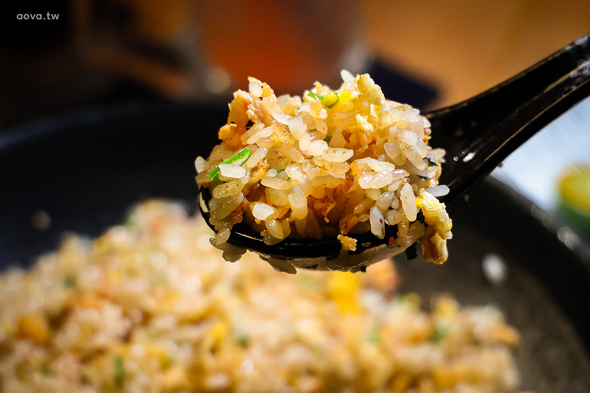 以鮭魚碎、金黃蛋絲大火快炒,鮮香十足,帶鍋氣的米飯粒粒分明,再撒上香鬆與蔥花,口感鬆香不油膩,好好吃又能超級飽。