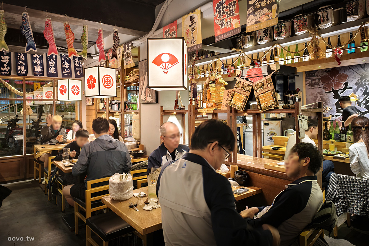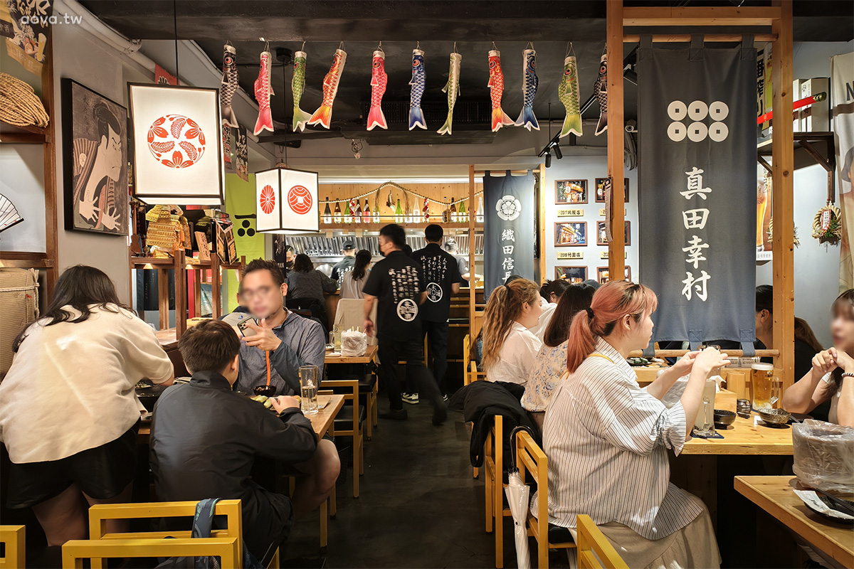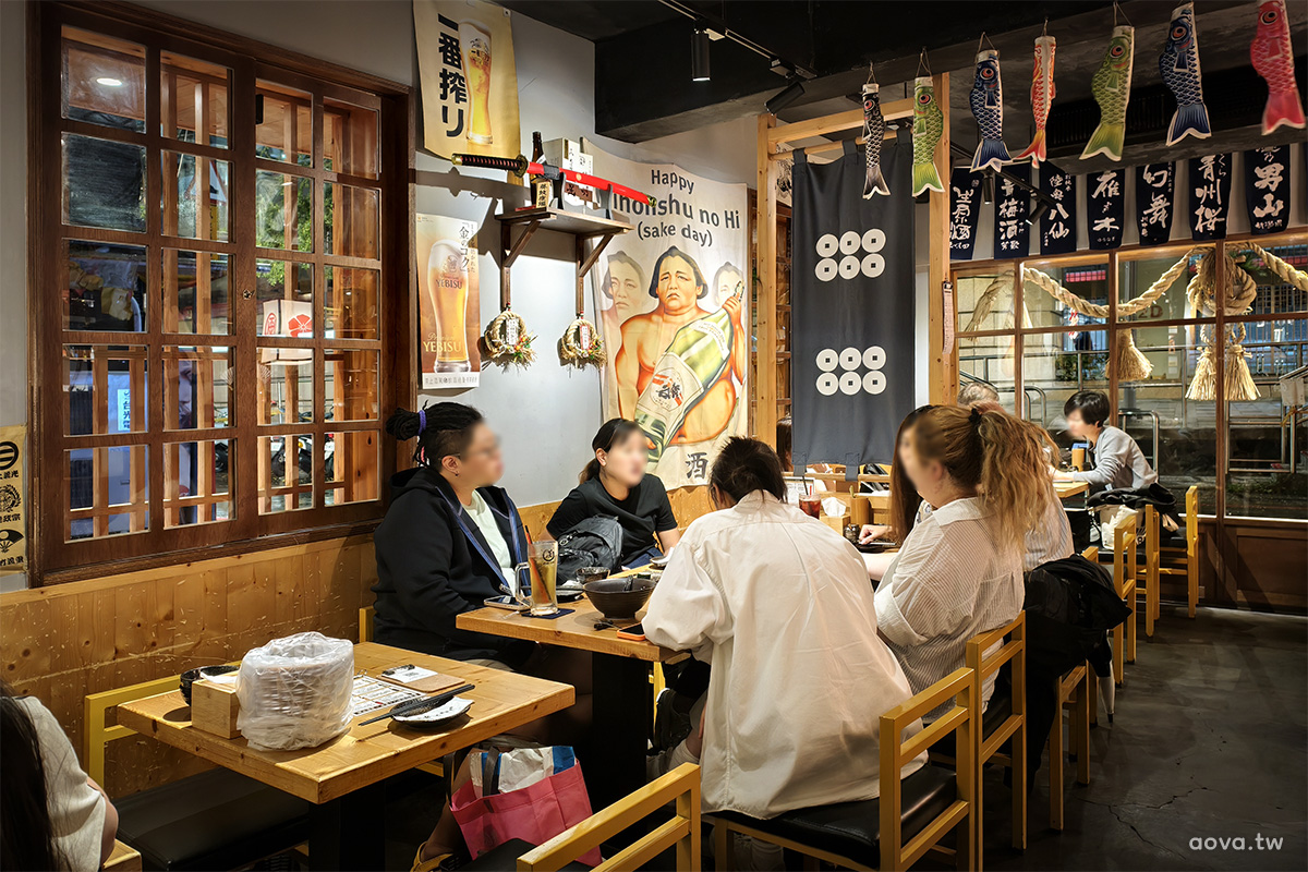 店內裝潢以木造為主,有著許多日本元素的擺飾,氣氛熱鬧。